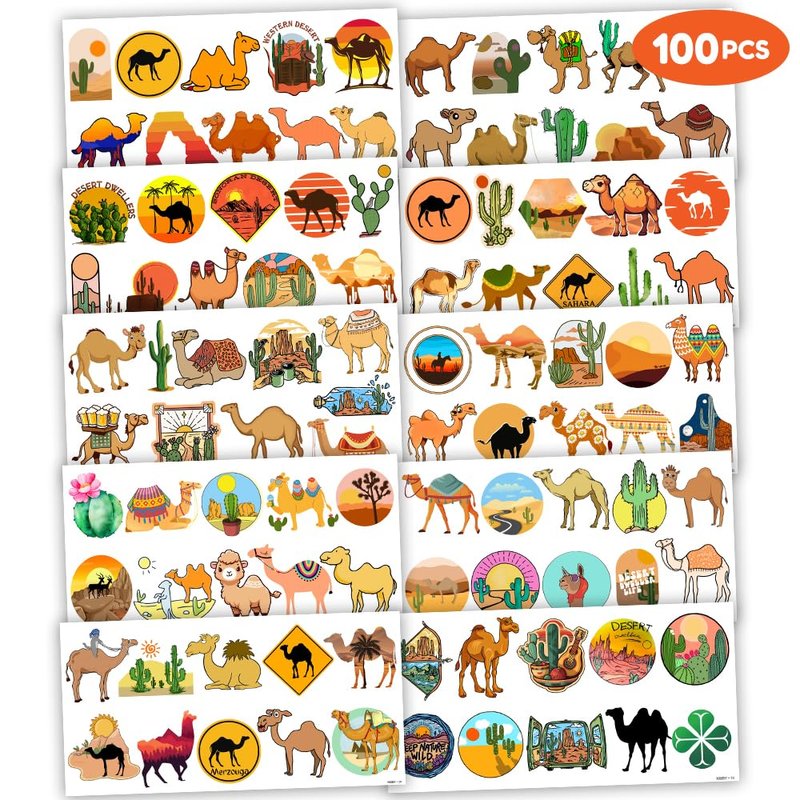 Desert Temporary Tattoos Camel Party Decorations Favors Supplies Summer Themed Cute Stickers 10 Sheets 100 PCS Gifts for Baby Girls Boys Class School Carnival
