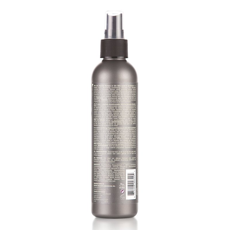 What it is: New and Improved Bamboo & Silk HCO Leave-In Conditioner is a targeted highly penetrating conditioning treatment that detangles smoothes and separates strands while providing intense thermal protection for blow drying and heat styles. What it does: Enriched with bamboo extracts and silk protein for maximum hair protection Bamboo & Silk HCO Leave In Conditioner quickly penetrates deep within the hair shaft to strengthen and replenish needed proteins leaving hair soft manageable and full of body. What else you need to know: Aqua/Water/Eau Polyquaternium-11 PEG-12 Dimethicone Amodimethicone Cetrimonium Chloride Trideceth-12 Phenoxyethanol Benzoic Acid Ethylhexyglycerin Glycereth-2 Cocoate Glycerin PEG-8 Dimethicone Meadowfoamate Panthenol Polysorbate 20 PEG-75 Lanolin Hydrolyzed Wheat Protein Fragrance (Parfum) Hydrolyzed Silk Protein Bambusa Vulgaris (Bamboo) Extract Red 33 (CI 17200) Amyl Cinnamal Benzyl Alcohol Benzyl Salicylate Citronellol Eugenol Geraniol Hexyl Cinnamal Hydroxycitronellal Lilial Lyral Step 1: Shampoo and condition the hair and towel blot Step 2: Spray Bamboo & Silk HCO Leave-In Conditioner onto wet hair Step 3: Comb through (with a wide tooth comb) to the ends Step 4: Proceed to style set or blow-dry
