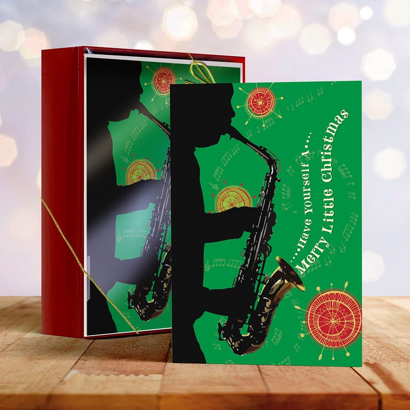 Designer greetings African-American Heritage Collection Boxed Christmas Cards, Soulful Saxophone Design (Box of 18 Foil Embossed Cards with Envelopes)