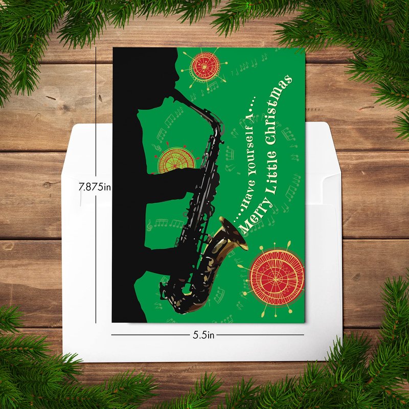 - PART OF OUR HERITAGE COLLECTION – Wish your friends and family a blessed Christmas with this classically festive greeting card, featuring a soulful saxophone design. As with all of the designs in our beloved “Heritage” collection that celebrates African-American traditions, this card design has an inspirational verse and warm, earthy colors, textures, metallic ink, foil and a color insert.
