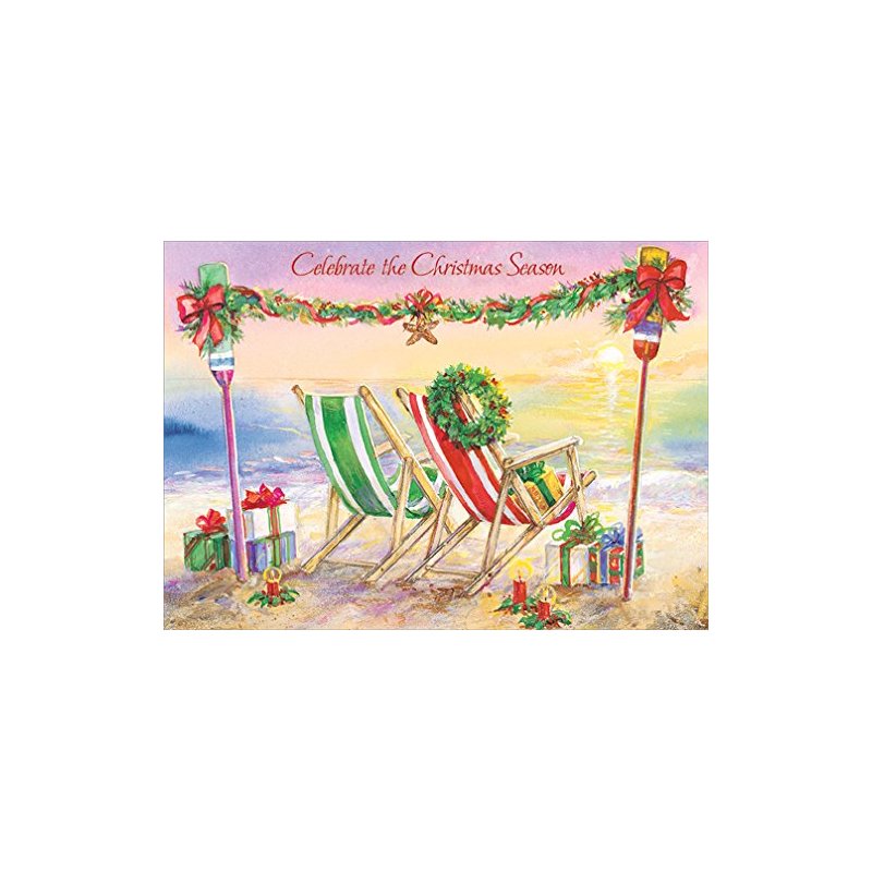 Designer Greetings Beach Chairs and Garland Box of 18 Warm Weather Christmas Cards