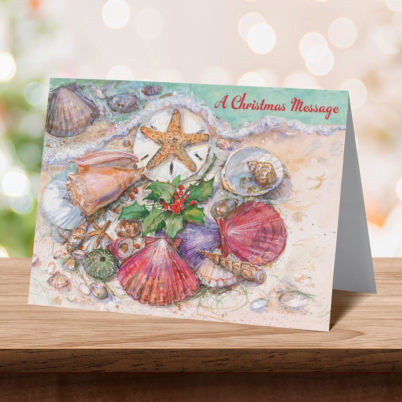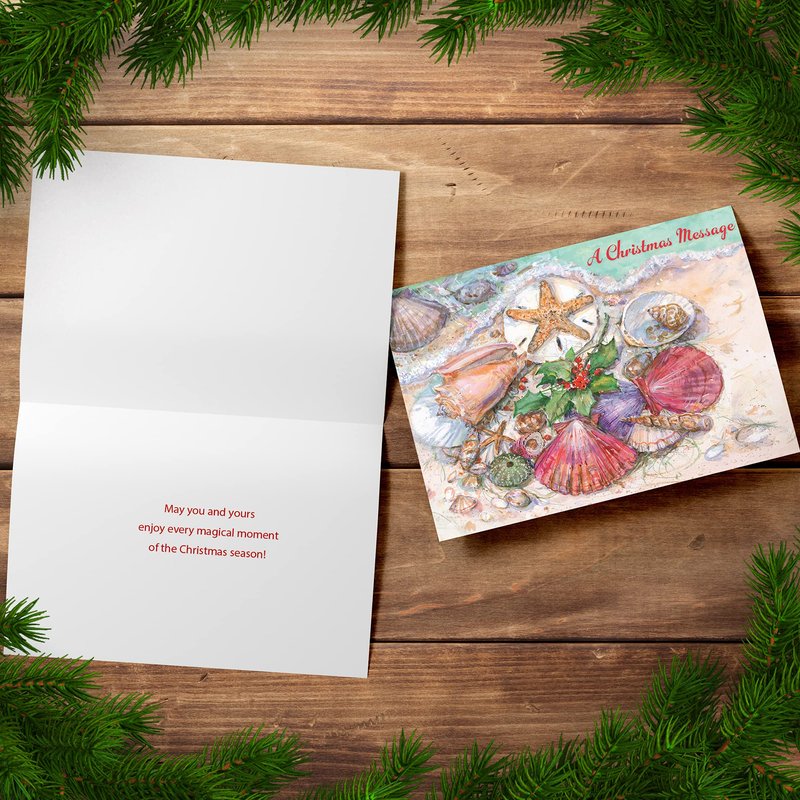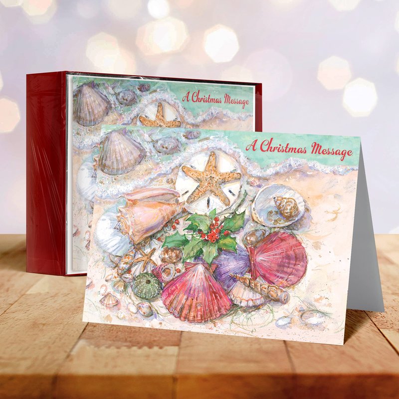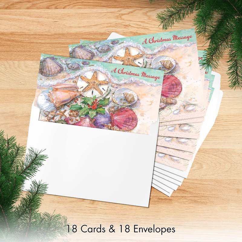 Designer Greetings Boxed Red Farm Studios Christmas Cards, Various Seashells with a Starfish and Holly (Box of 18 Nautical/Coastal Holiday Cards with White Envelopes),Sand & Seashells,125-00836-000