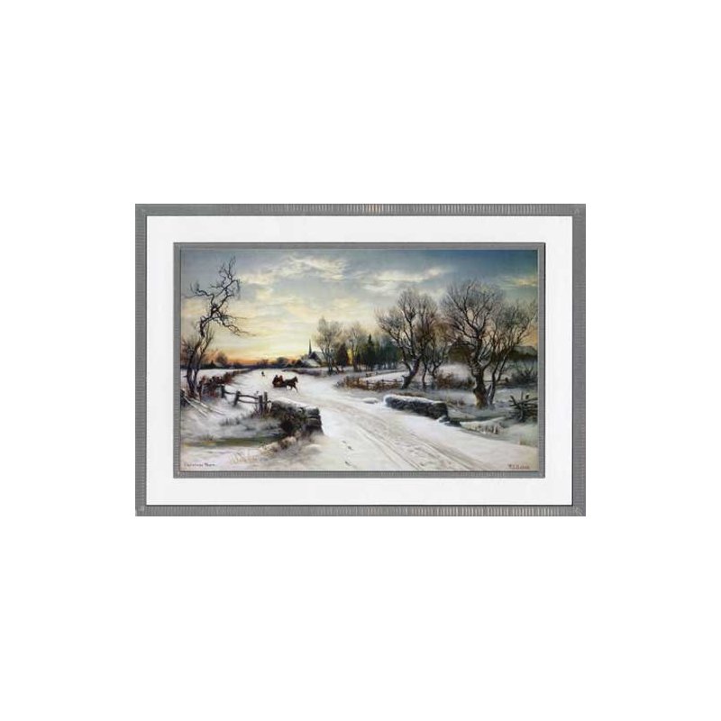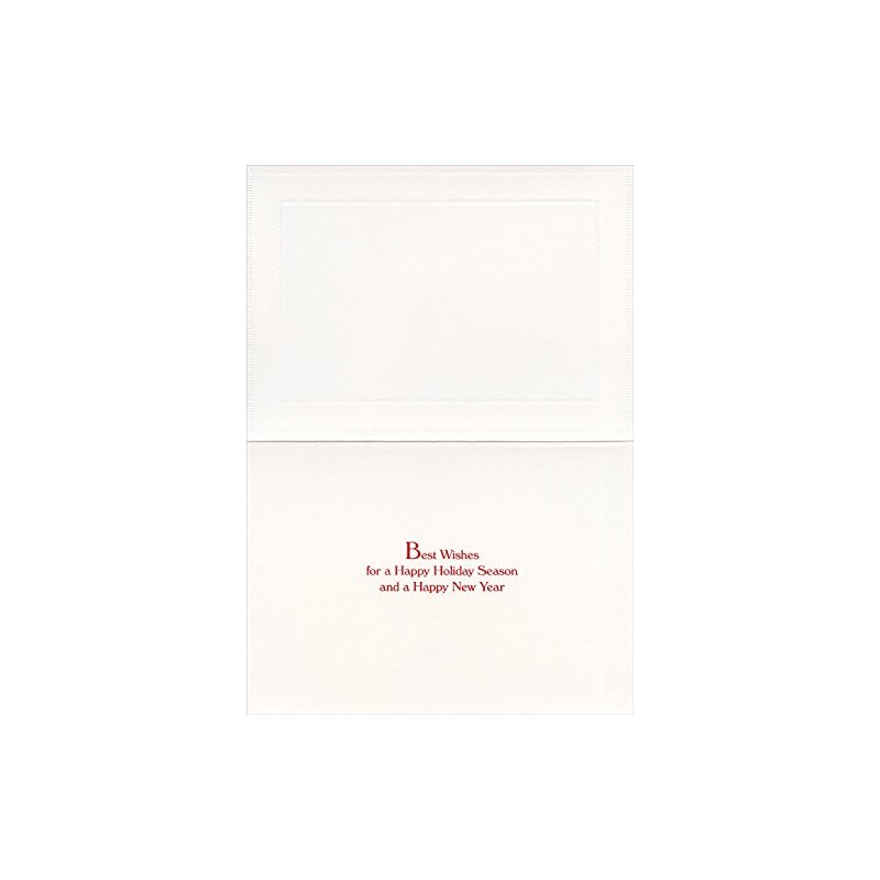 The interior of this Designer Greetings W.C. Bauer Christmas card design reads: Best Wishes for a Happy Holiday Season and a Happy New Year. Each card measures 7.875x5.5 inches and is printed on heavy cardstock. The set includes 18 cards and 18 envelopes. The cards also have the following special features: silver foil, embossed. Christmas Morn by W.C. Bauer is featured on the front of this Christmas card showing a horse drawn sleigh crossing a bridge on a snow covered morning.