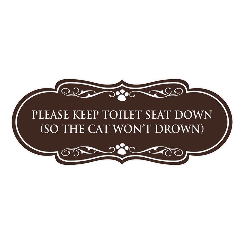 Designer Paws, Please Keep Toilet Seat Down (so the cat won't drown) Sign (Dark Brown) - Medium