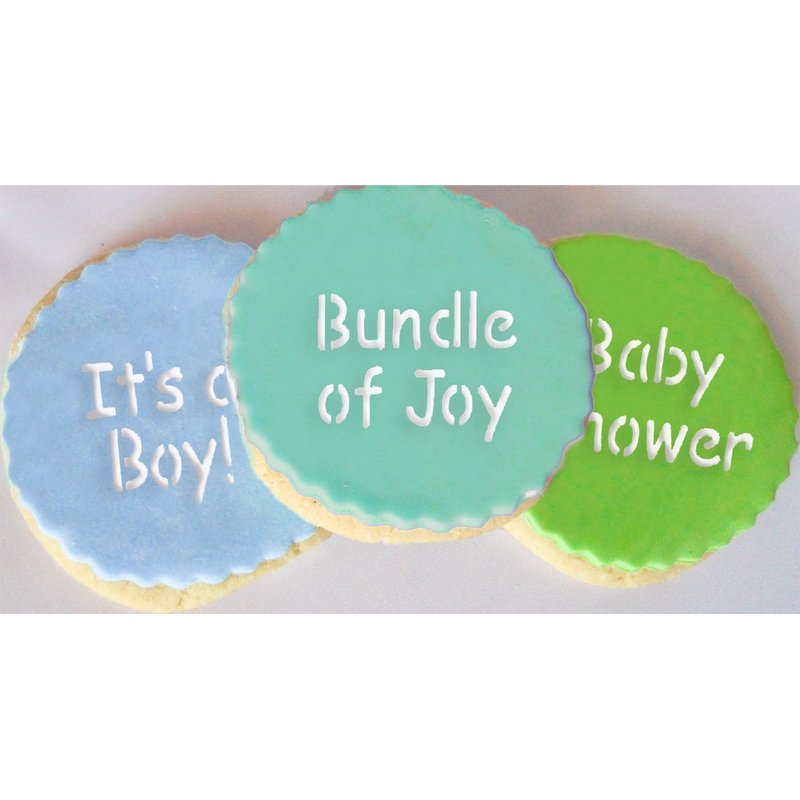 Perfect lettering for a Baby Shower. Set includes: It's a Girl - It's a Boy - Baby Shower - Bundle of Joy - You're Special - Welcome Baby. Lettering fits within a 1.3" circle so they will fit on cupcakes, macaroons and candies. Cut out of durable 10 mil food grade plastic for high-quality, professional, repeat use. cake stencils, cookie stencils, cake stencils decorating buttercream, cake stencil, cookie stencils for royal icing, cookie stencil holder, cookie stencil, stencils for cake decorating, cake decorating stencils, number cake stencil, cake stencils & templates, cake stencils for buttercream, cookie decorating stencils, baking stencils, cake letter stencils, stencil for cake decorating, cake number stencils, cookie stencils for airbrush, pyo cookie stencil.