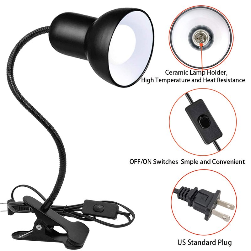 - 【360° Degree Flexible Gooseneck】12 inches universal black gooseneck metal tube, 360° rotating Minimalistic design, Durable flexible gooseneck allows you to adjust your clip light with ease and to direct the light wherever you want. The table lamp will show you the best perspective