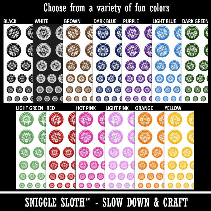Detailed Realistic Tire Wheel Car Vehicle Temporary Tattoo Water Resistant Fake Body Art Set Collection - Black (One Sheet)