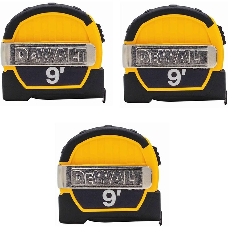 DeWALT 9 ft pocket tape measure offers great convenience in a small package, the rear magnet mounts to metal toolboxes for storage and the 9 ft blade length is great for measuring standard drywall and plywood sheets. Sold as 3 Pack