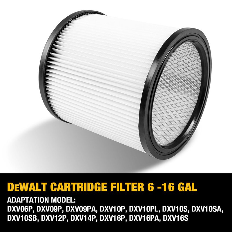 - UNIVERSAL DESIGN: Replacement cartridge filter, fit for 6-16 gallon wet/dry vacuum cleaners, compatible with DXV06P, DXV09P, DXV09PA, DXV10P, DXV10PL, DXV10S, DXV10SA, DXV10SB, DXV12P, DXV14P, DXV16P, DXV16PA, DXV16S wet/dry shop vacuums
