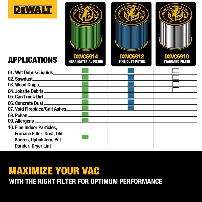 - WHAT YOU GET: DEWALT DXVC6910 cartridge filter x 1
