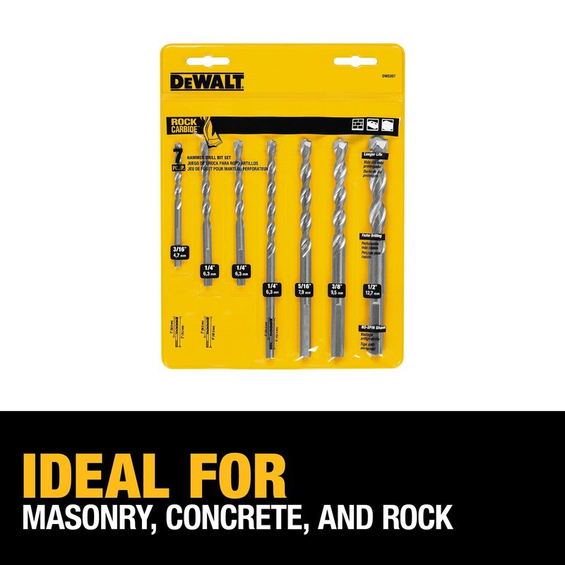 DEWALT Masonry Drill Bit Set, Percussion, Concrete & Block, 7-Piece (DW5207)
