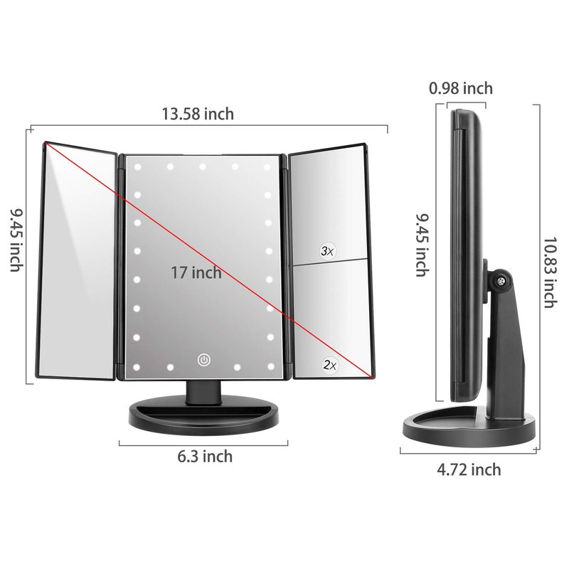 - 180°swivel rotatable, can be fixed at any position as needed, 3 panels vanity mirrors provided with wide angle viewing