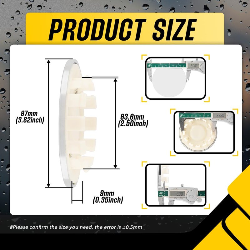 - ⚙ Size:Maximum outer diameter:97mm(3.82in), Clip inside diameter:63.6mm(2.5in), Height: 9mm(0.35in)