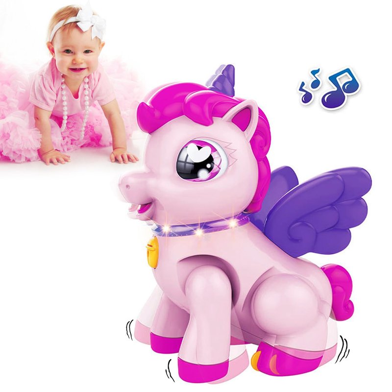 - 【ADORABLE INTERACTIVE UNICORN】:This unicorn toy is perfect for babies aged 1 to 11 months, enabling them to enjoy the fun of this adorable unicorn during their early developmental stage. A dditionally, it is also suitable for boys and girls aged 2 to 4 years old, helping them exercise and learn while playing. While engaging with this toy, your baby will develop sound cognition abilities, fostering brain development, creativity, and imagination. Get this electric unicorn now and bring endless joy to your baby!