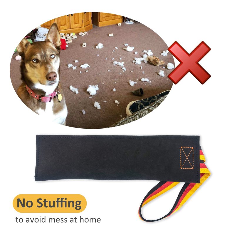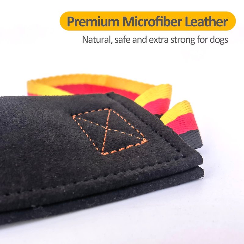 - Durable:The indestructible fire hose made of 5 layers premium microfiber leather,which is natural, safe and extra strong for dogs. Smooth surface of leather tug make your dog close its jaws stronger to hold the tug in his mouth.It is heavily stitched to handle that are very comfortable to hold the tug when dog bites and pulls strong.