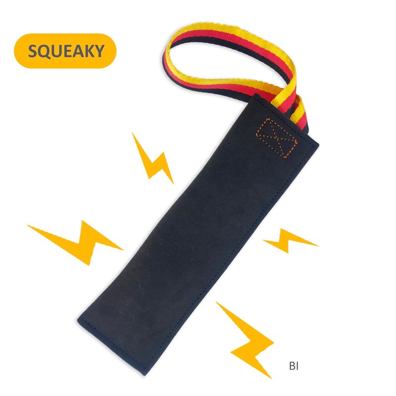 Dewonch No Stuffs Squeaky Leather Bite Tug Toy for Dog Training, K9 Puppy Pull Toy with Handle to Build Prey Drive,Train Biting Grip,Play Tug of War Game (Squeaky Toy)