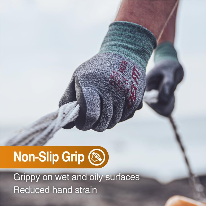 - STRONG GRIP IN ALL WORKING CONDITIONS. Need to grab a slippery pipe or move boxes? Our palm coating is slip resistant even on greasy or wet surfaces.