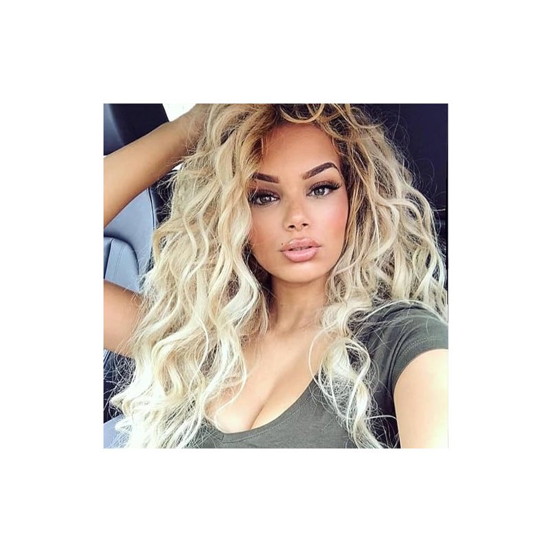 DEYNGS Blonde Long Curly Wavy Wig Ombre Platinu...