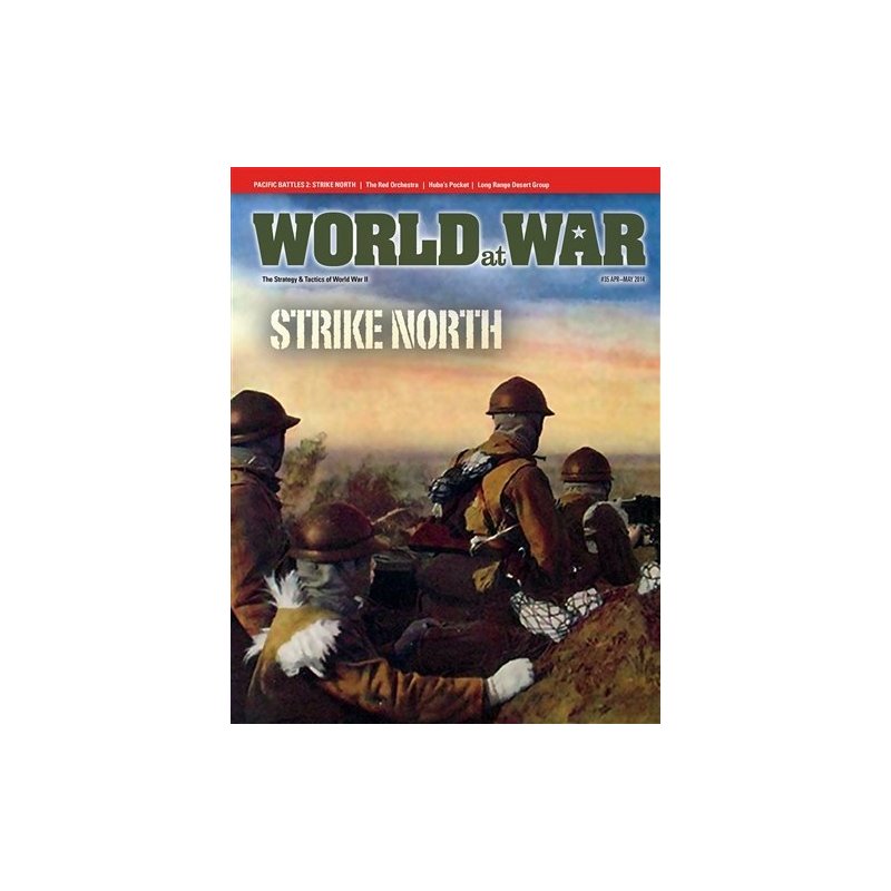 Strike North presumes that Imperial Japan has decided to invade the Soviet Union in 1941, instead of going to war with the United States. Conceptually, a Japanese invasion of the Soviet Union would be in conjunction with the German attack on the USSR (Operation Barbarossa) on 22 June, 1941. The strategic possibilities of this alternative course are incredible; The Soviets will be under the pressure of fighting a two-front war. However, by following this strategy, the Japanese would be temporarily abandoning their planned invasions of the resource regions of the East Indies and beyond, leaving Japan less than a half-year of oil to sustain their war effort. The map shows Northeast Asia as it was in 1941, with each hex on the map equaling roughly 37 miles (60 kilometers) from side to opposite side. Each game turn represents one month of operations. The units are brigades, divisions and corps. Components: One 22" x 34" map & 228 counters