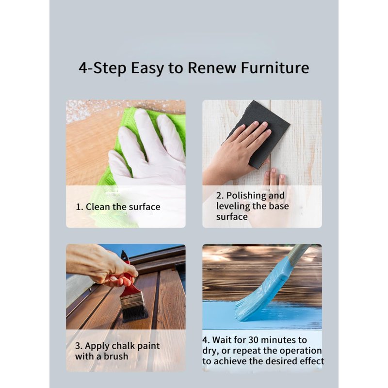 - Easy to use: 1. Clean the surface, wait for dry; 2. Apply chalk paste paint with paint brush or screen printing squeegees; 3.wait about 20-30 minutes until the chalk paint is dry;4. Waxing, this is not a necessary step. DGAGA wood paint beginners kit can easily made a furniture refinish.