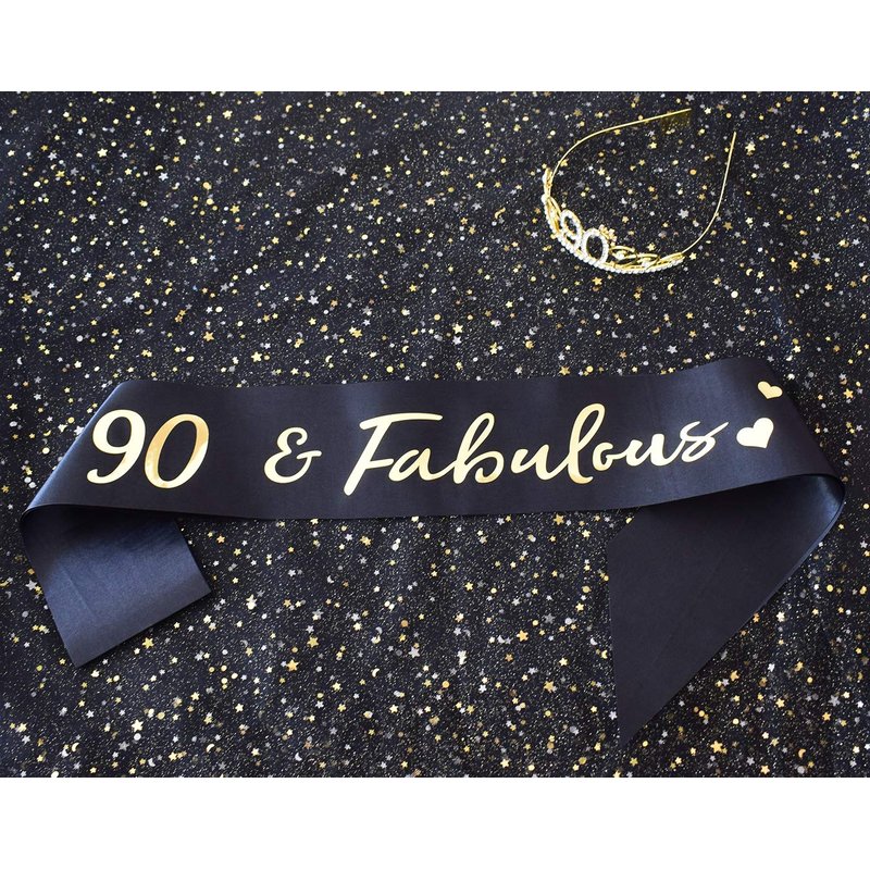 - The Perfect Birthday Party Set - Includes 1pcs “90 Fabulous”birthday sash and 90-year-old gold tiara. It is a wonderful gift for the lady’s 90th birthday.