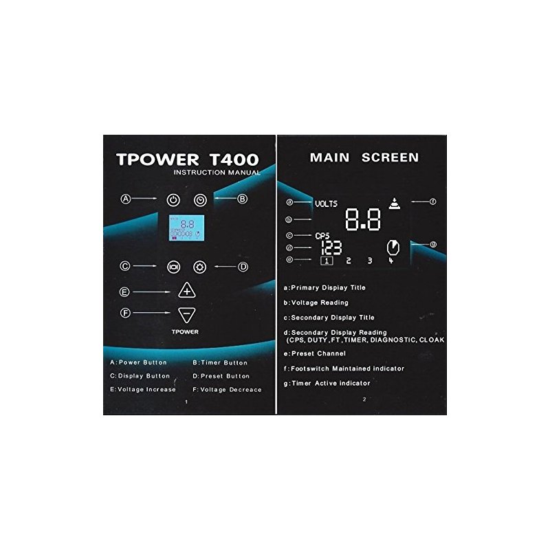 New T-400 LED display Power Supply Smart Touch Button, 4 programmable Machines presets, Build in Momentary / Maintained Footswitch Mode, One Press Power on/off Button, nput Power 85V- 260V 50/60HZ. / Output Power 0-18V. 2 AMP.