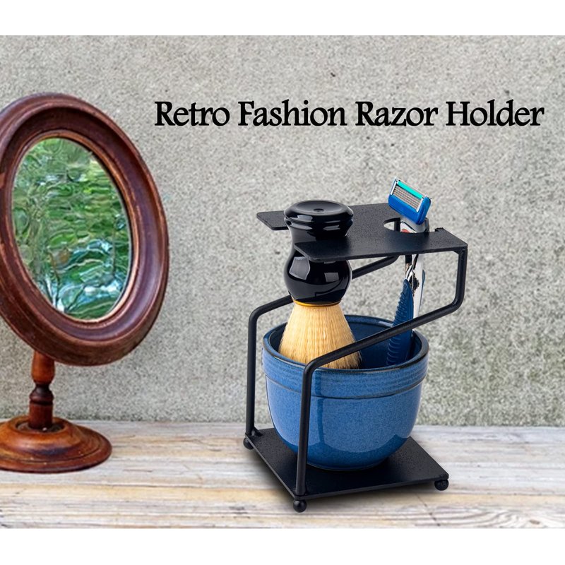 - 【Keeps Your Beard Products Organized】Our safety razor stand keeps your beard care products neatly in their designated spots, which has 2 hanging holes and a table top to be able to place razor, shaving brush, and shaving soap bowl. This razor holder is great way to keep your shaving sets organized to create a neat and comfortable bathroom.