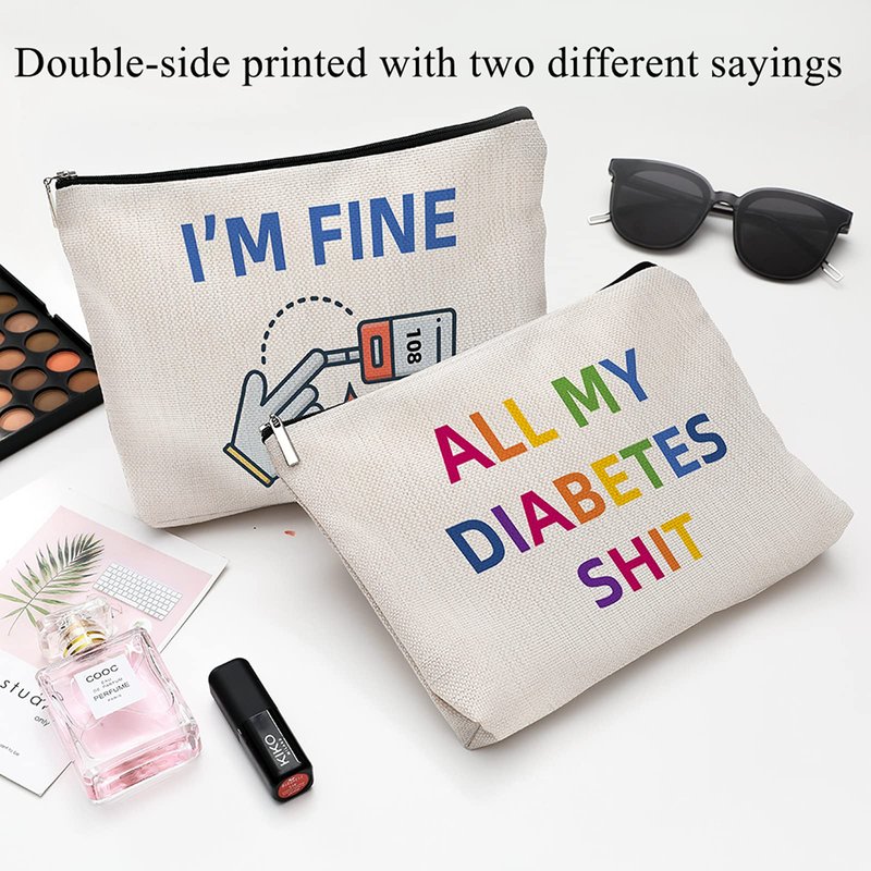 - 【Hilarious Design】Bored with your black standard-issue supply case? This Cute bag is Double-side printed with funny colorful saying “All My Diabetes Shi-t” & “I’m Fine”, a fun way to make people smile when they do their daily diabetic routines. Super cute gift to mom, papa, grandma, gigi, nana, mom, auntie, daughter, sister, cousin, best friends, boss, employee, teacher, nurse, wife, etc.