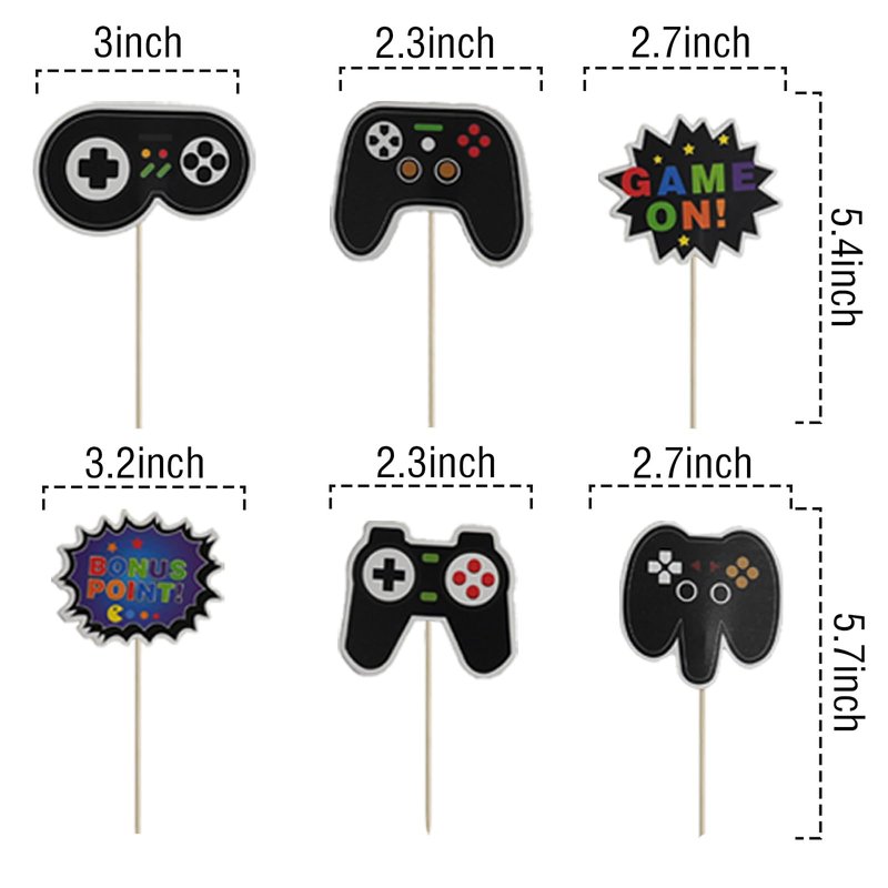 - Great addition: These video game party toppers are perfect for video game themed birthday parties, baby showers, dance party, gamer wedding, bridal showers, fruit trays and food snacks on kids' party, other video game themed party supplies decorations.
