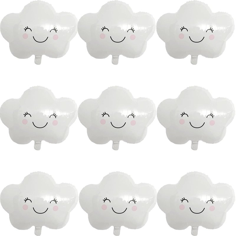 DIADARL White Cloud Balloons Smiling Face Cloud Shaped Foil Mylar Balloons for Baby Shower and Birthday Party Decorations Supplies (10Pcs)