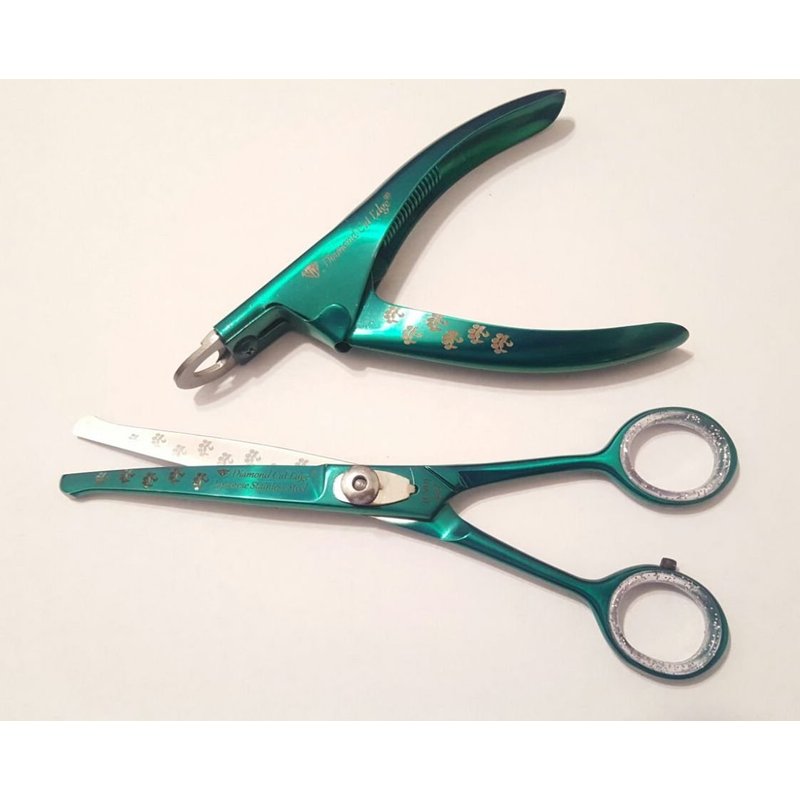 Diamond Cut Edge Professional Pet Dog Grooming Scissors Shears 6.5" Curved Ball Tip Face and Paw Japanese Stainless with Case and Toe Nail Cutter
