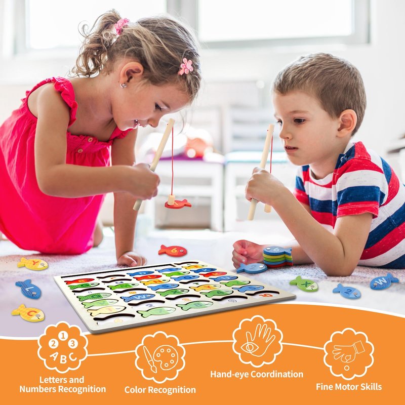 - How to Play Fishing Game: Return all letters and numbers to the corresponding cognitve board, and then use a special magnetic fishing rod to fish the letters or numbers that the children want on the cognitve board. We have 2 fishing poles that can also interact with other children to fish. Find out who catches more fish, or let your kids use their imaginations to create their own unique gameplay.