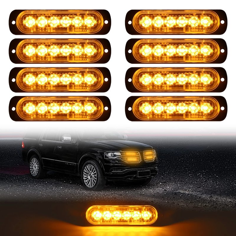 DIBMS LED Strobe Warning Lights, 8x Amber Yellow LED Strobe Warning Emergency Flashing Light Caution Construction Hazard Light Bar For Car Truck Van Off Road Vehicle ATV SUV Surface Mount