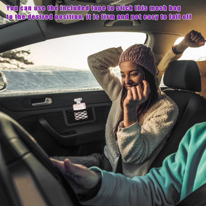 Dickno 2 PCS Car Pocket Phone Net, Universal Seat Side Storage Net Bag with Double Sided Tape, Automotive Frame Storage Net Pocket, Vehicle Interior Organizer for Phone Purse Bag