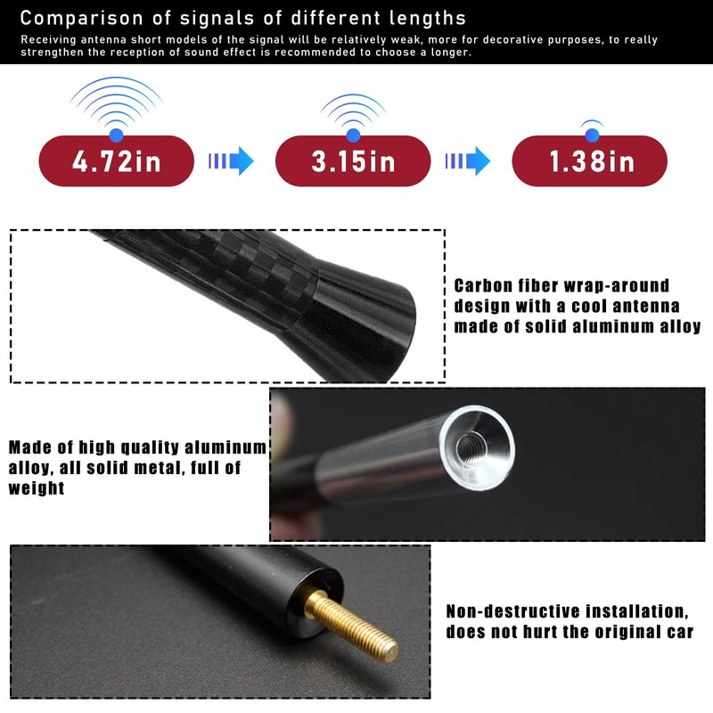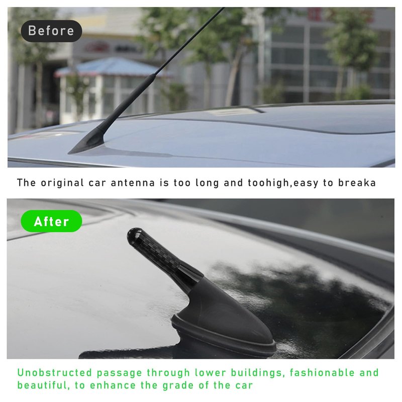 - 【Cool Decoration】: Mini aluminum automotive antenna can act as an ornament to decorate your car exterior, upgrading your car's appearance. It is designed with carbon fiber textured surface on the middle, which is very cool and adds a touch of fashion and sport. The top and bottom ends are smooth and glossy.