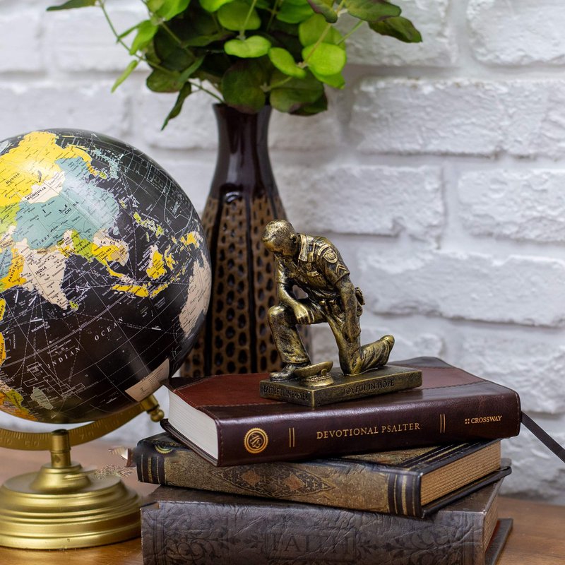 Dicksons Joyful in Hope Praying Police Officer 5 inch Gold Resin Stone Table Top Figurine