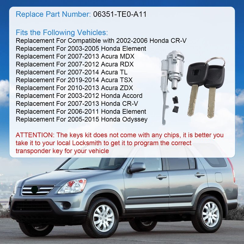 - [USING THE HO01 TRANSPONDER KEY] Compatible with 2002-2006 Honda CR-V, compatible with 2003-2005 Honda Element, compatible with 2004-2005 Honda Pilot.