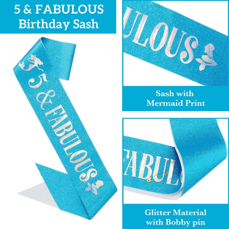 Didder 5th Mermaid Theme Birthday Party Sash and Crown Outfit for Little Girls Ocean Themed Birthday Party Decorations for Girls