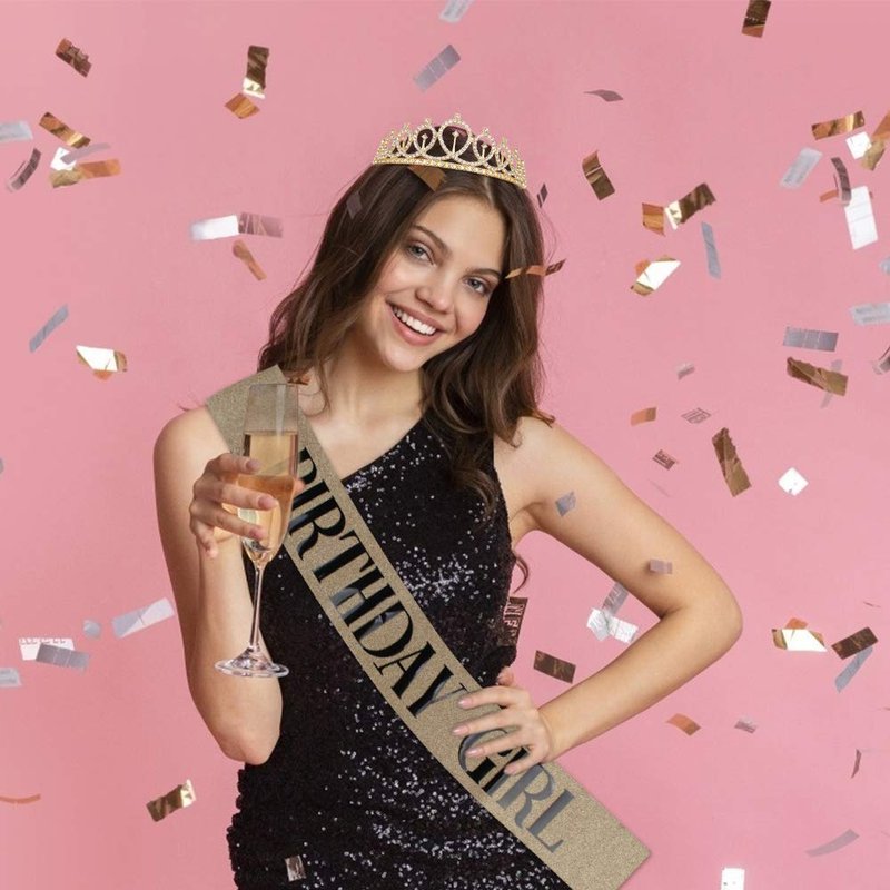 - 【Birthday Girl Sash & Rhinestone Tiara Set】1 x Birthday Girl Sash, 1 x Rhinestone Tiara. Beautiful Glitter Sash and Rhinestone Tiara will make everybody stand out.