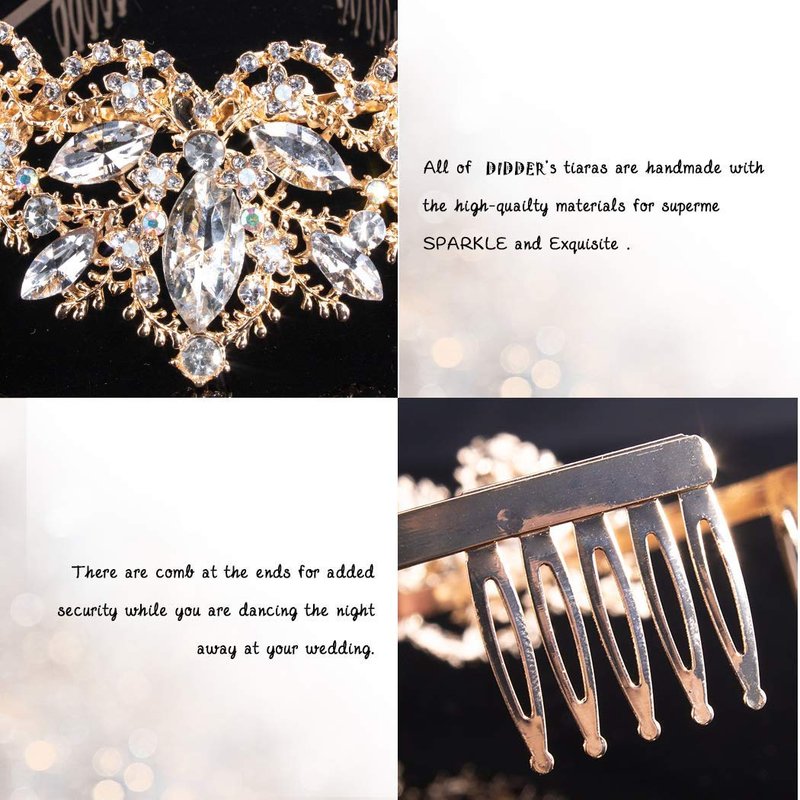 Didder Bridal Tiara Gold Tiaras for Women, Crystal Tiaras and Crowns for Women Princess Tiaras for Girls Birthday Crown for Prom Wedding Party Halloween Costume Hair Accessories Christmas Gift