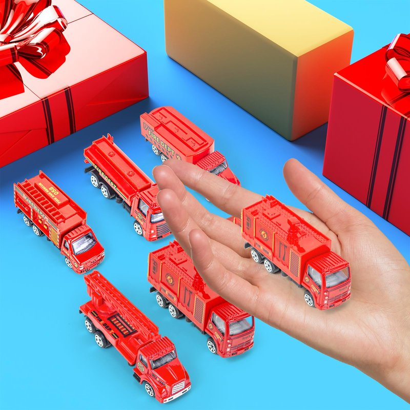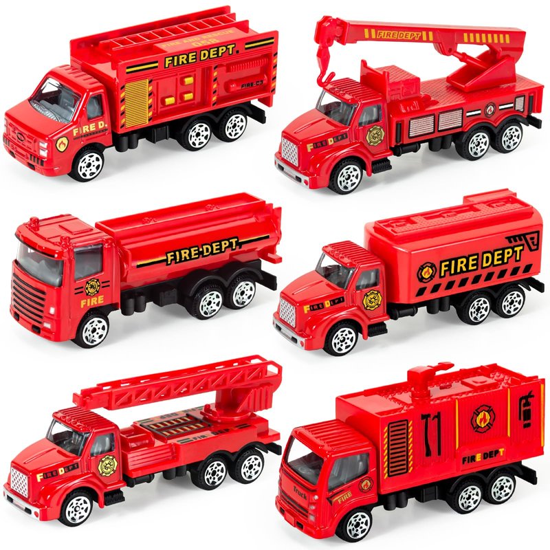 - Mini Toy Fire Truck Playset for Todders: 6 pcs different assorted diecast car fire trucks includes transport vehicles, trucks, trucks, cranes, fire trucks, and ladder trucks.Kids can create they own fire station base and play a fireman role.6pcs die-cast mini fire truck toy set with different designs and functions, very realistic and cool.Your lovely kids will have an amazingly fun time playing with friends and family!