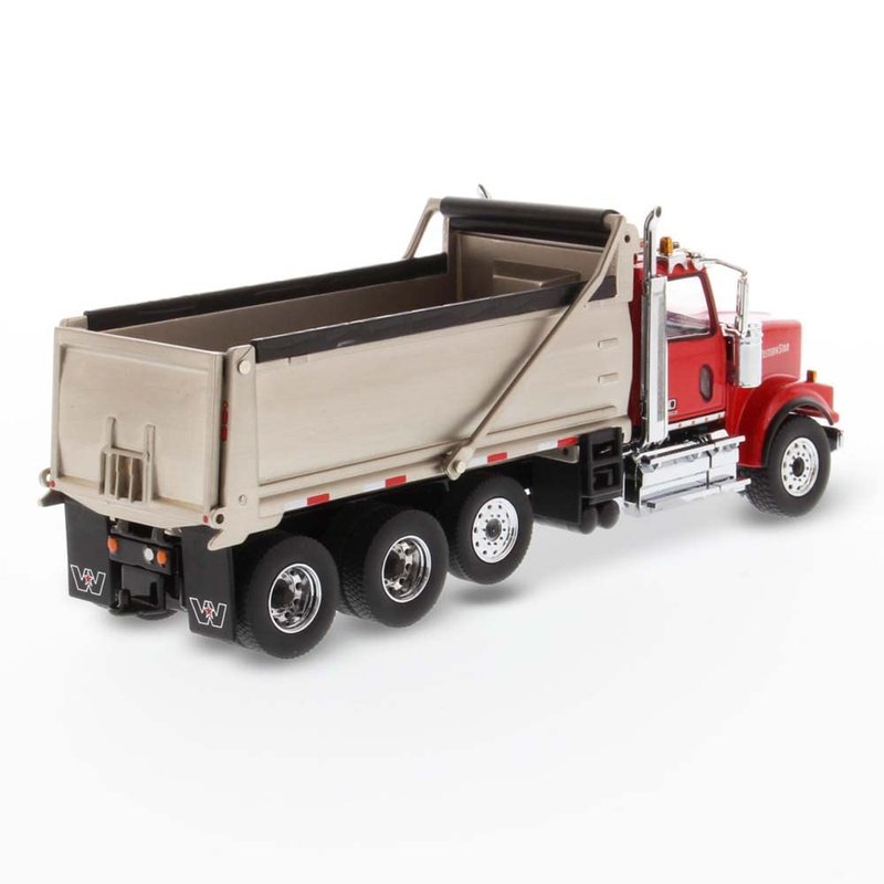 Officially Licensed 1:50 Scale Western Star 4900 SF Dump Truck with Red Cab & Matte Silver Dump Body by Diecast Masters