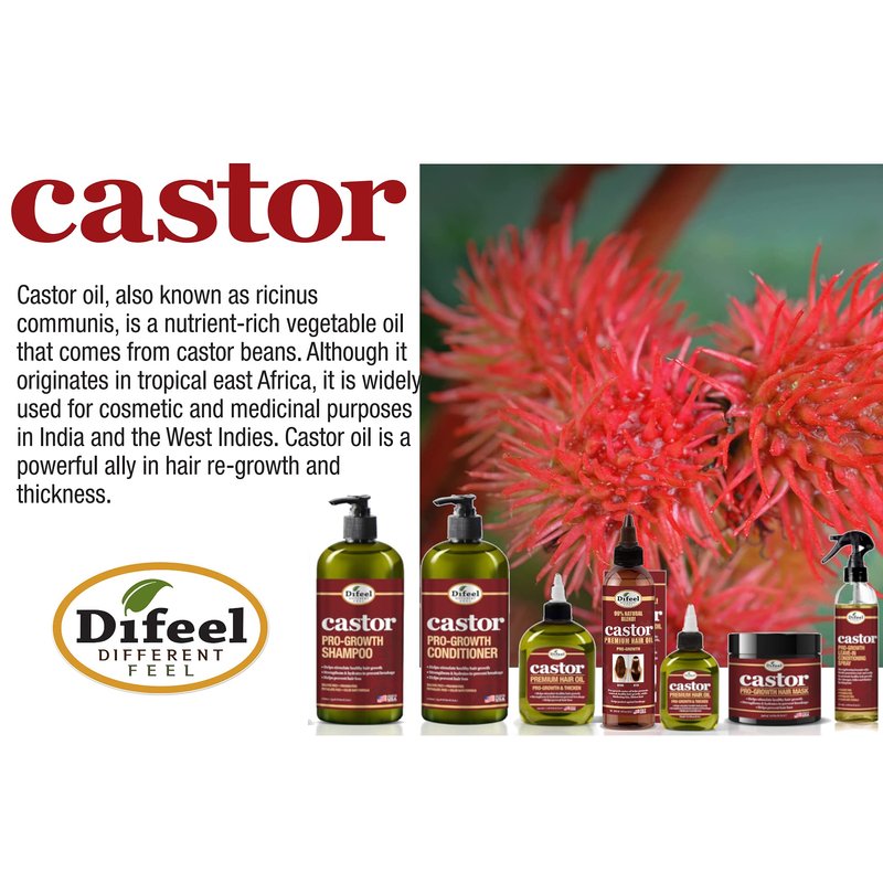 - LARGER 8OZ BOTTLE! Difeel Castor Pro-Growth Premium Hair Oil is a vitamin-rich pro-growth formula for longer, stronger and thicker hair.