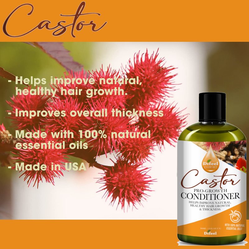 - Shampoo Castor Oil for Hair Growth - Difeel Essentials Pro-Growth Castor Shampoo stimulates healthy hair growth while preventing hair loss. Strengthens & Hydrates to prevent breakage. Moisturizes Hair, Keeps Hair Silky Soft and Smooth