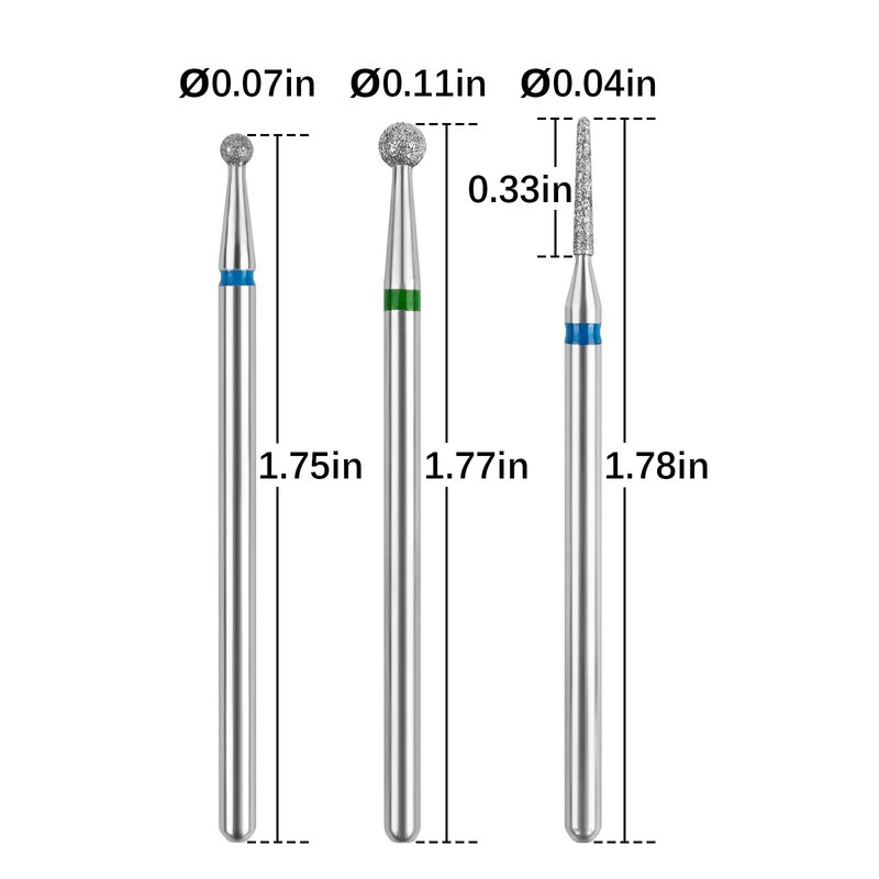 • Size and Compatibility:Ball head diameter:0.07inches,0.11inches;needle head size :1.78*0.04inches.these cuticle nail drill bit are easy to install,3/32" shank compatible with most electric nail file machines.