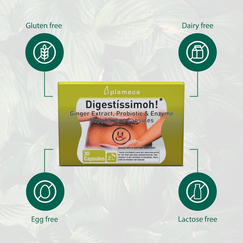 Digestíssimoh! Digestive Enzymes, Probiotics – 9 Strains, Ginger Extract for Digestive Health & Gut Support, Meal Time Discomfort Relief & Bloating, Gluten-Free and Dairy-Free, 30 Capsules