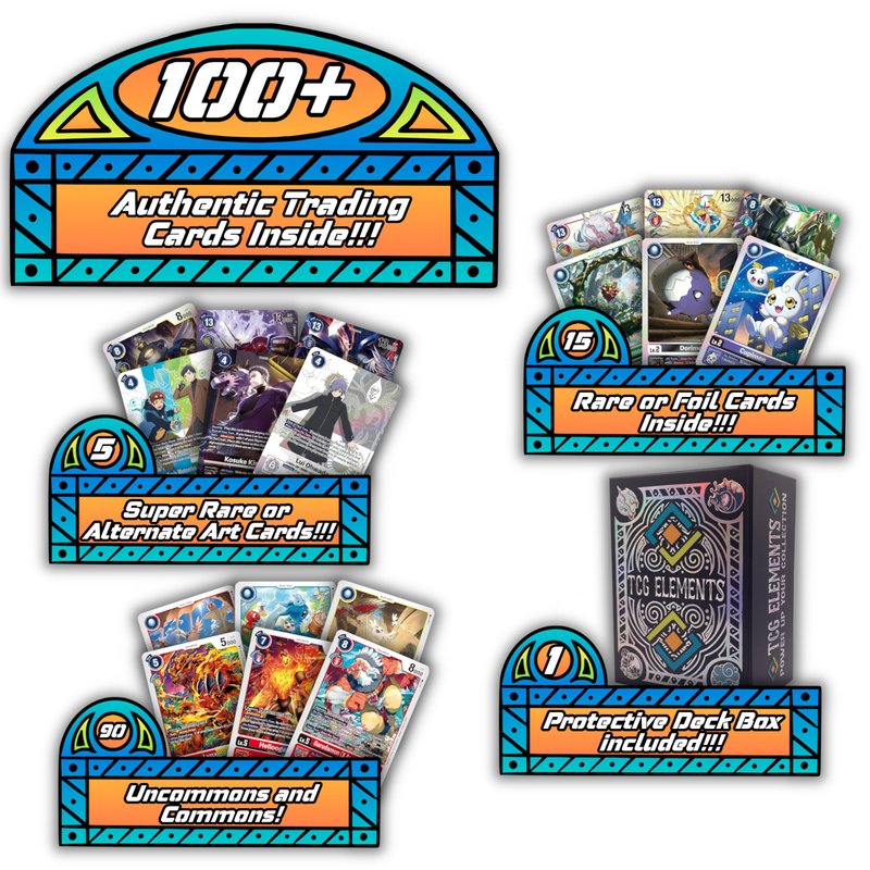 Digimon Ultra Rare Starter Bundle | 100 Authentic Cards | 99x C/UC | 15x Random Foils | 5 SR/ALT | TCG Elements Deck Box