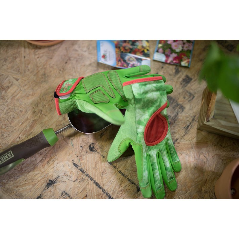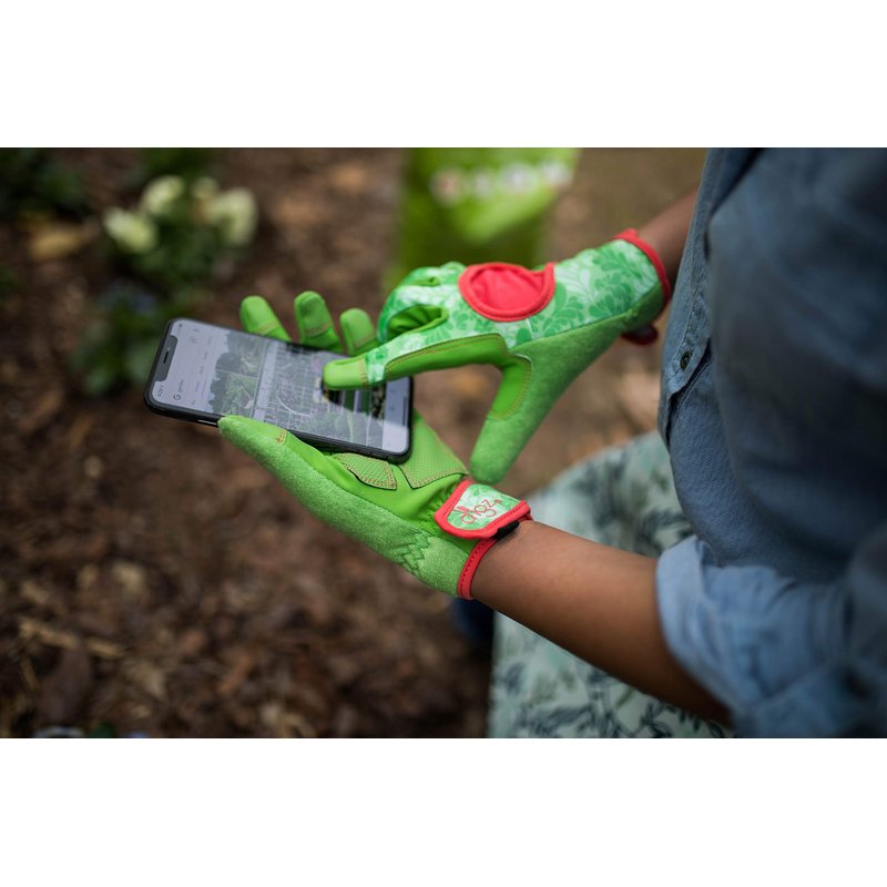 DIGZ 7652 Signature High Performance Women's Gardening Gloves, Work Gloves with Touchscreen Compatible Fingertips, Green Leaves Pattern, Medium