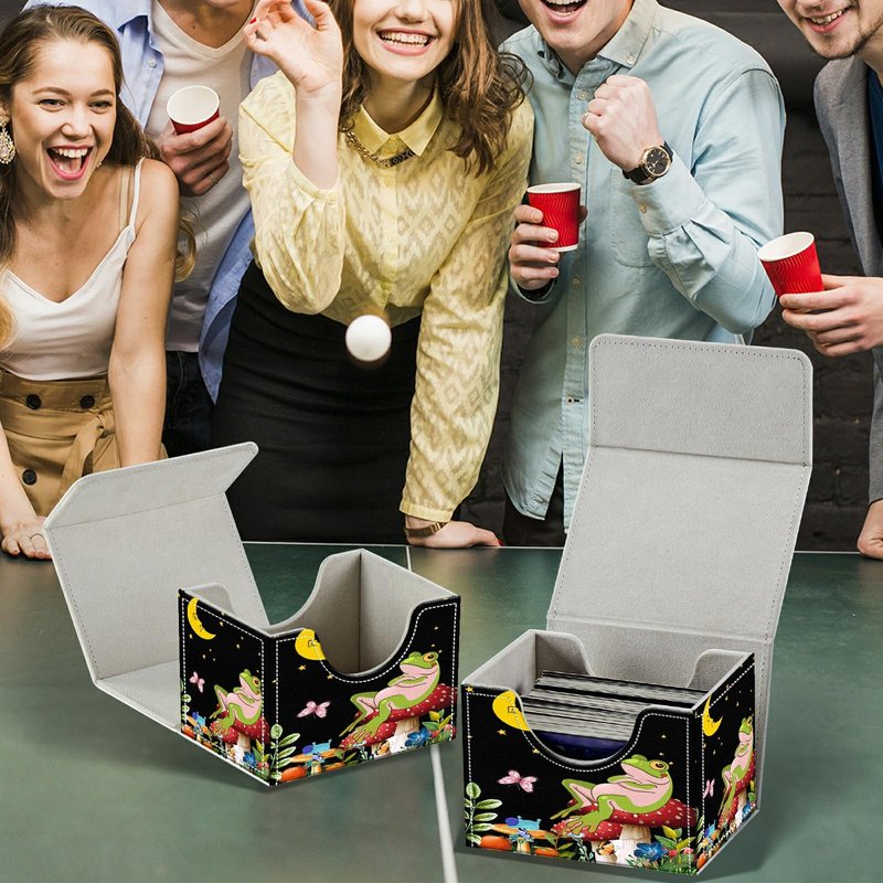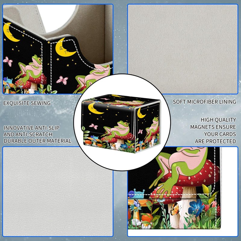 Dikoer Card Deck Box, MTG Commander Deck Box for Trading Cards, 100+ Sleeved Cards with PU Leather Magnetic Card Storage Box for TCG CCG Magic Cards - Mushroom Frog