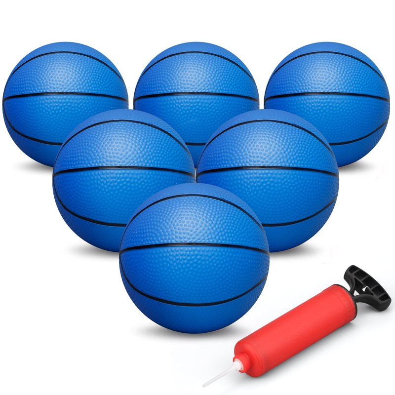 - Natural rubber material, non-toxic and safe for having fun with these balls; Package: 6INCH diameter blue rubber basketball * 6. EXTRA BONUS with a pump and pin.The white needle is on the handle of the air pump and needs to be removed for use.